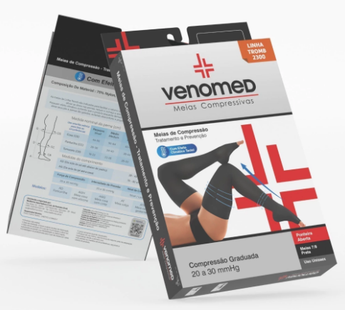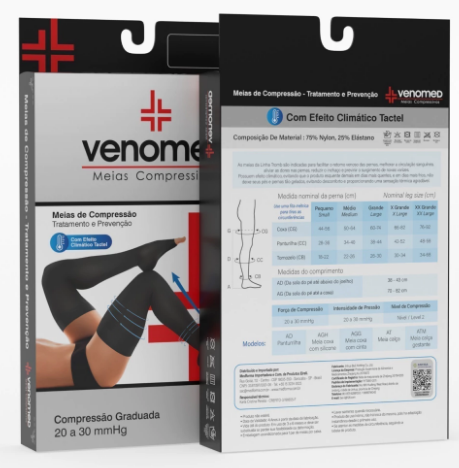 MEIAS COMPRESSÃO 20 a 30MMHG ABERTA EFEITO CLIMÁTICO 7/8 VENOMED TROMB2300 COR PRETA - MEDFORMA