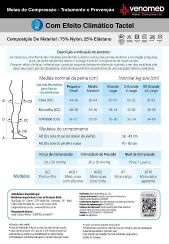 MEIAS COMPRESSÃO 20 a 30MMHG FECHADA EFEITO CLIMÁTICO 3/4 VENOMED TROMB1400 COR PRETO - MEDFORMA