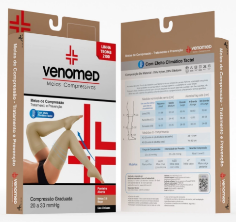 MEIAS COMPRESSÃO 20 a 30MMHG ABERTA EFEITO CLIMÁTICO 7/8 VENOMED TROMB2100 COR BEGE - MEDFORMA