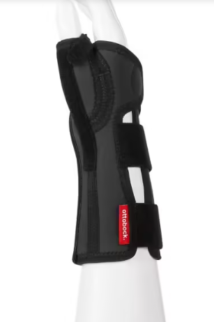 A órtese Manu 3D previne movimentos incorretos do punho e também estabiliza o polegar em pacientes com queixas no punho. A órtese possui uma tala volar de plástico que limita a flexão e a extensão.