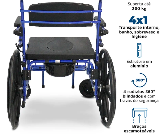 - 4 em 1 - Perfeita para transporte interno, banho, sobre vaso e higiene
