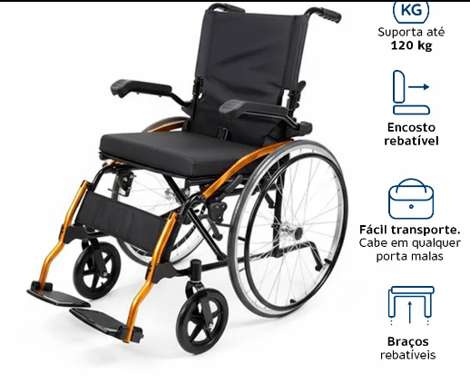 - Braços rebatíveis (escamoteáveis) que facilitam a transferência.